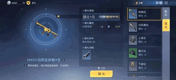 强化和配件不同,它对所有装备都适用,不管是近战武器还是防具都能进行强化,玩法也比较简单,只要获取材料后点击强化就行。需要注意的是,强化不同的部件会带来不一样的效果,像强化主武器能提高伤害强度,强化近战武器则能增强技能强度。另外,强化支持无损继承,玩家更换任何装备时,强化效果会自动转移到新装备上。