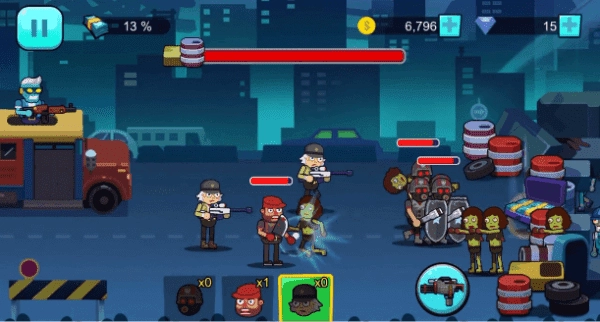 2、招募更多的雇佣兵来对抗入侵小镇的僵尸,保证小镇居民的安全,动态的射击音效和战斗特效非常酷炫精致。