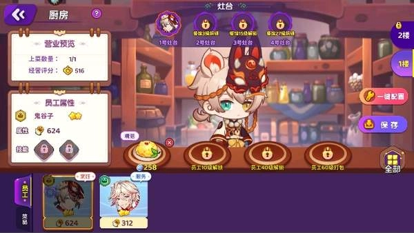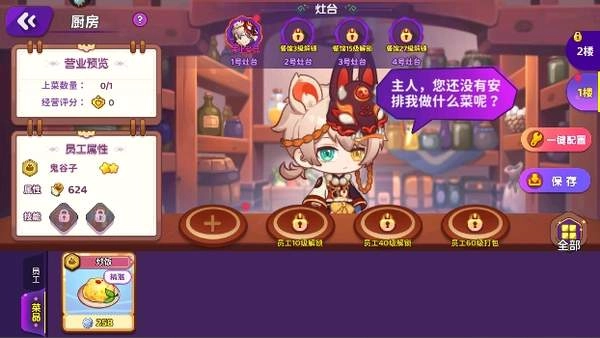 4、收益评分是所有厨师上架菜品售价总和*桌子数。