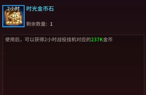 中有特殊获得金币的道具,该道具可通过关卡副本,活动兑换,商店购买等途径进行获取,最常见的就是2小时挂机金币,金币获取的数量与当前通关的关卡挂钩