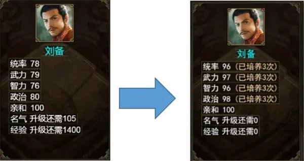 +永久增加武将属性、阵形及技能,可实时带入剧本、战役及指挥技关卡等玩法,避免重复培养;