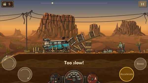 死亡战车(EarntoDie)是一款极具刺激感的赛车竞速游戏,它以2D画风构建出一个荒凉的末日世界。在游戏里,玩家需要驾驶战车躲避各类僵尸的追逐,同时收集不同的战车零件来对车辆进行改装升级。玩家能够在游戏中体验到被追逐的紧张感以及驾驶战车的刺激感。