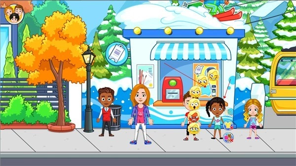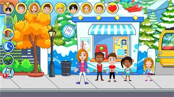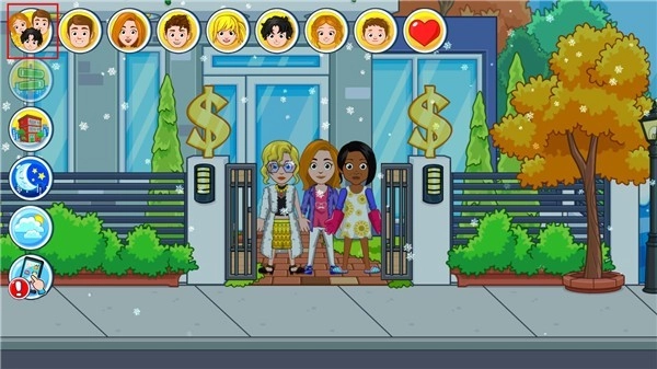 2、玩家点击左上角的卡通任务按钮,可以自由切换场景,天气,人物。