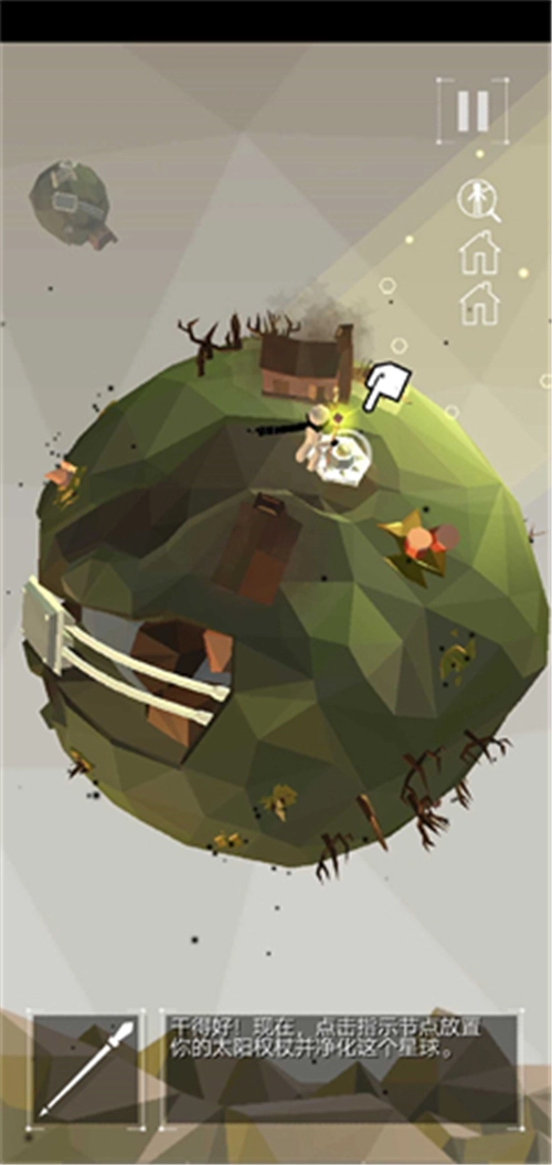 2、通过手指滑动星球,让阳光折射产生能量,逐步净化病毒。