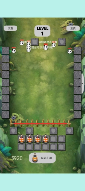 2、玩家点击底部的炮台购买,滑动屏幕可以移动炮台。