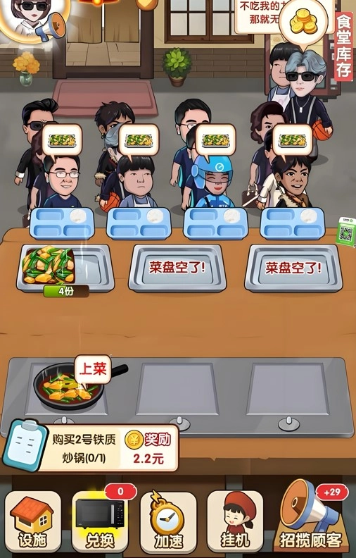 -下方则是功能区,你可以在这里升级食堂设施。