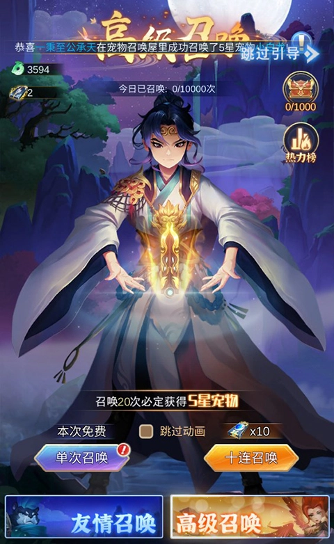 2. 完成上一章剧情后,“灵墟秘境”将解锁,每天可以进行三次灵宠召唤(推荐优先抽取群体治疗类型的灵宠)