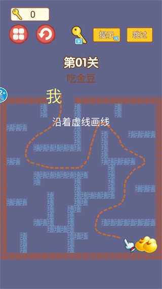3、玩家先在迷宫中画出一条正确的路线,而【我】则会跟随线路行动,目标则是迷宫中的金豆。