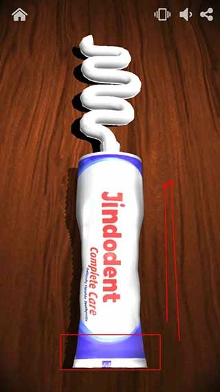 4、点击后,页面中就会出现一个拧开的牙膏,这时我们从顶部向上挤。牙膏会越挤越多,挤完后会重新开始很减压;