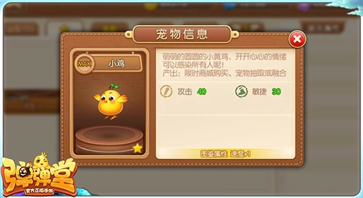 小鸡:作为《弹弹堂》中的吉祥物,宠物小鸡既能提供一定的攻击加成,又可以增加我们的速度,很适合在战斗中打先手压制。