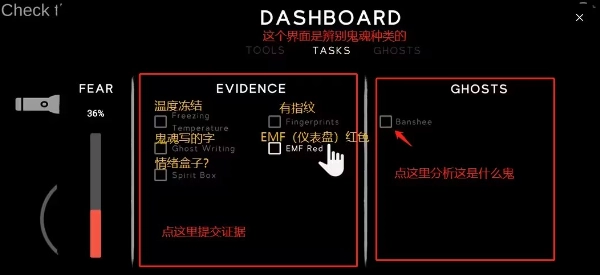 8、在笔记本上通过一系列的选项来确定本次鬼魂的类型,这个中的鬼魂类型可不少,比如我们教程里的爬行种叫“Banshee(女妖)”,还有“Jinn”.“Shade”.“Phatom”...等12种,他们也有难易程度之分。