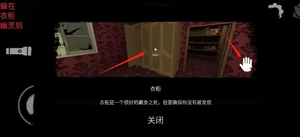9、躲藏基本上是藏在柜子里,通过听声音的方式来确定鬼魂是不是走了,所以玩这款是需要戴耳机的,推荐是“头戴式耳机”这样会更有沉浸感。