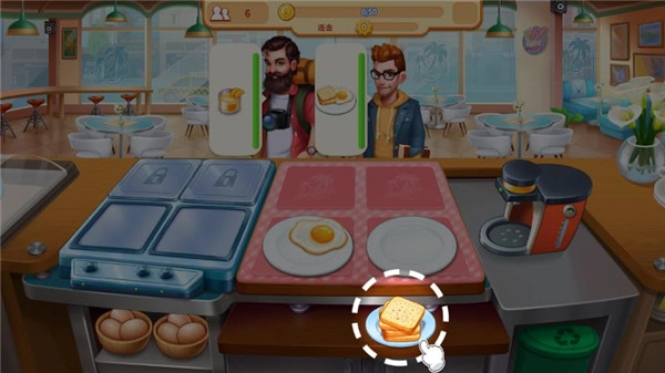 4、随心使用厨房里的道具,把食材烹饪成美食,让众多客人知道你的烹饪之家。