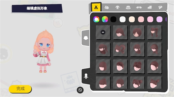 2、编辑虚拟形象,装扮人物的发型、衣服、饰品等等