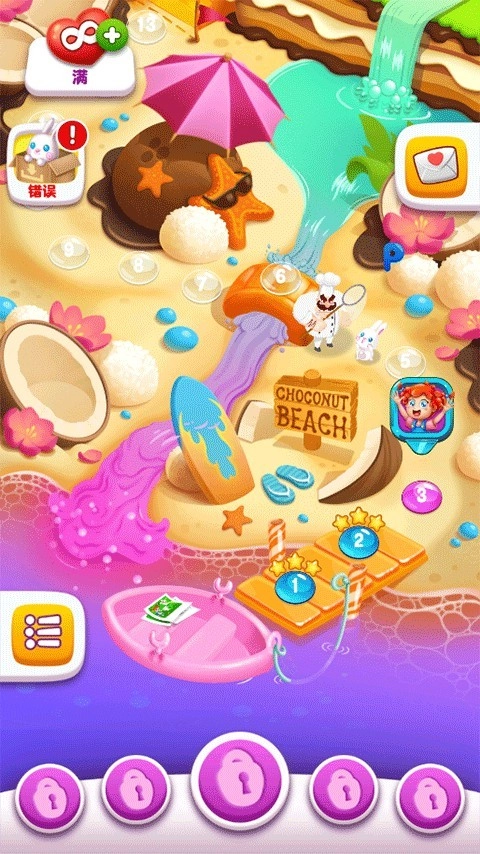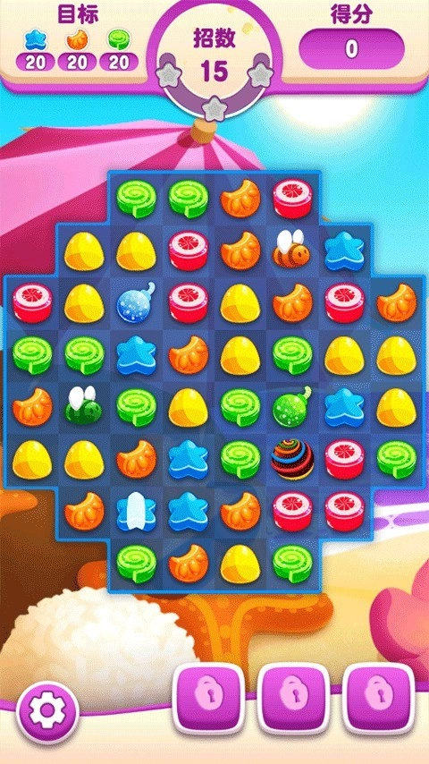 2、根据每一关的要求,收集指定数量的糖果,才能顺利解锁下一个关卡。