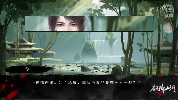1、打开后,映入眼帘的是充满水墨韵味的画面,我们不必急于开始,先点击右上角的菜单按钮。
