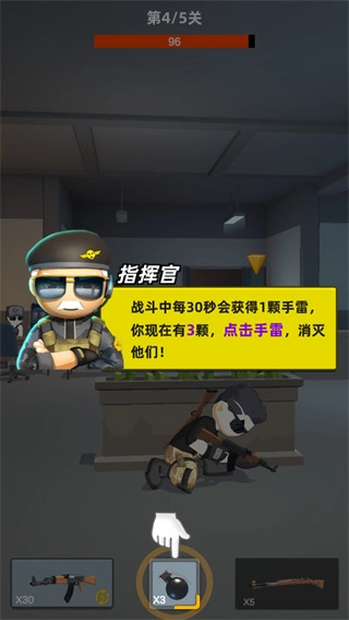 6、战斗过程里每30秒会得到一颗手雷,玩家能够合理运用它来助力自己更顺利地完成闯关