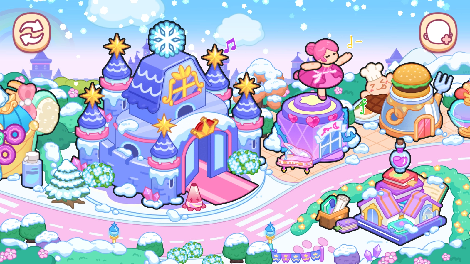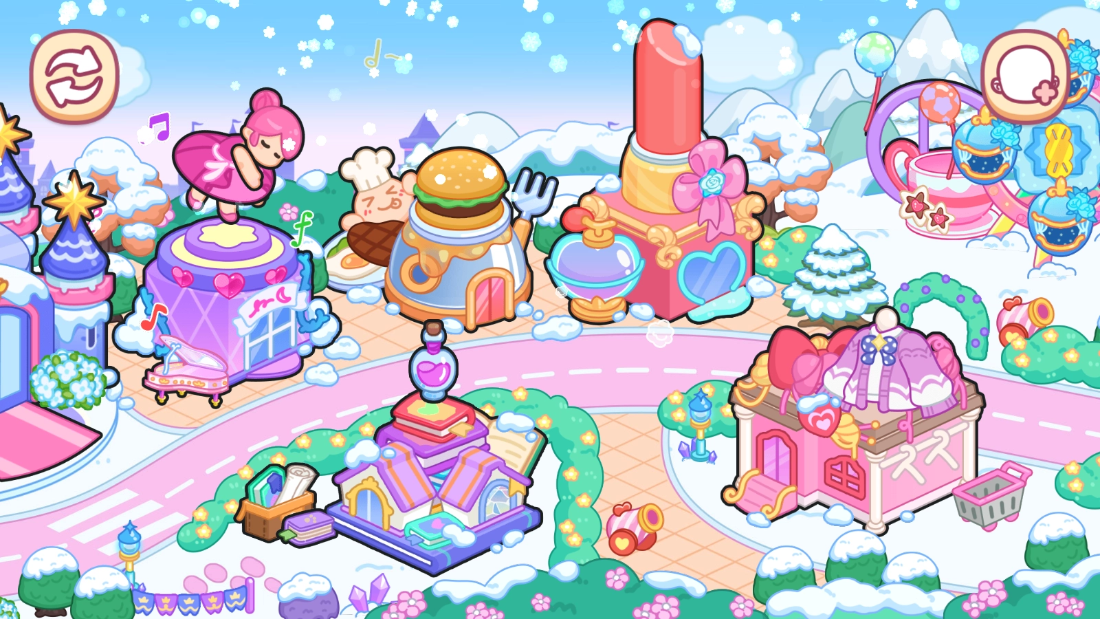 你有没有梦想过进入公主的世界,体验她们的生活?好吧,你来对地方了!在艾拉的公主世界里,你是这里的小公主!你有自己的冰城堡,就像艾尔莎公主的大城堡一样!当然,还有其他建筑,比如浪漫的婚纱店、魔法学校、有趣的游乐园、高档的美容院等等。我们的小公主们都可以自由探索!