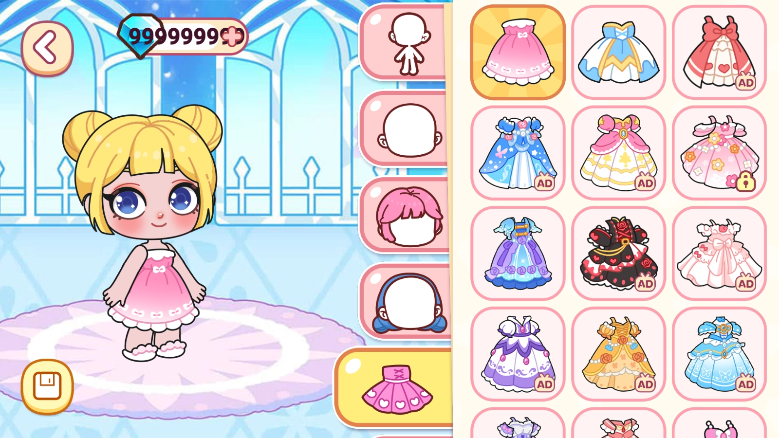 来吧,DIY你自己的公主造型!面部特征、衣服、发型、配饰、鞋子、袜子、翅膀等有数百种选择。在你的脑海里,总有一种是公主!它可以精致优雅,也可以华丽端庄,也可以可爱俏皮。。。它不一定只是一个公主。你可以成为时尚偶像、女学生,甚至灰姑娘。如何设计和匹配它们完全取决于你!来打扮一下,化个妆吧!