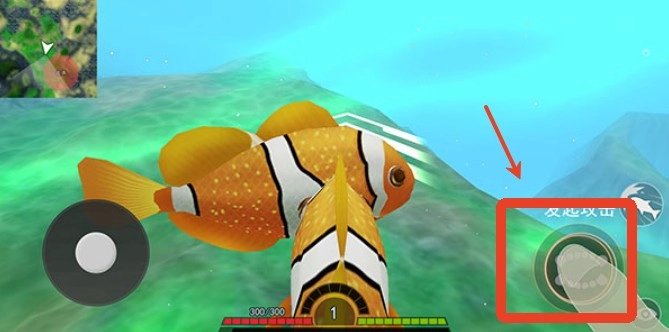 2、在游戏里遇到其他同等级或低等级的鱼类时,点击右侧的攻击按钮,就能发起攻击。