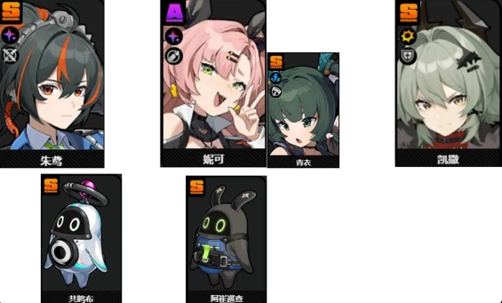 与朱鸢组队的话,就用,朱鸢,妮可,凯撒一队,依然是用凯撒打击破,妮可上减防BUFF,最后换朱鸢输出,有好的条件的,就把妮可换成青衣