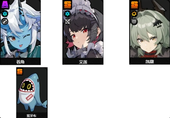 与鲨鱼妹组队的话,可以用苍角,艾莲,凯撒一队,也是替换的狼叔的击破位,跟原来一样的使用