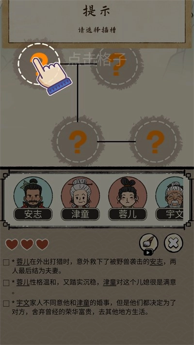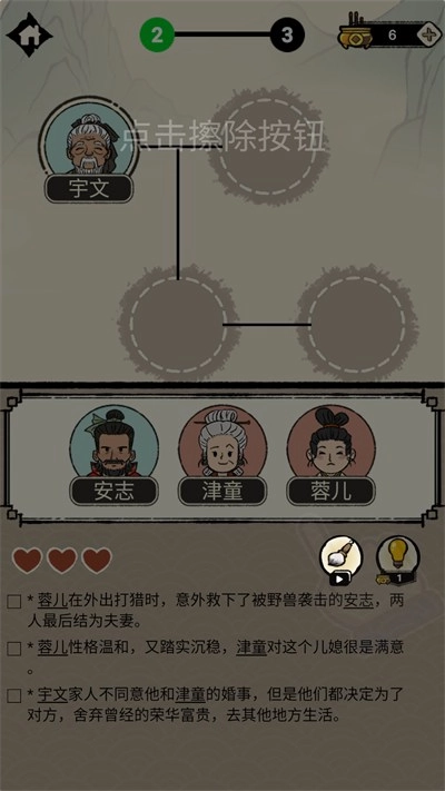 10、消失的线索会自动帮助你将对应头像放置在格子上;