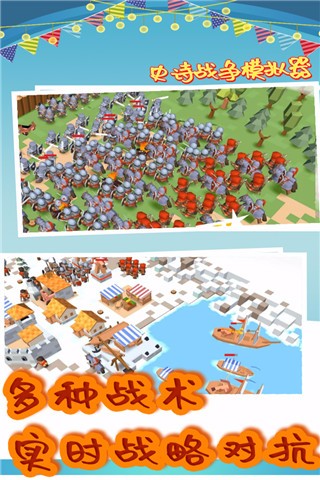 这是一款画风清新独特的卡通休闲策略游戏,玩家在游戏中不仅需要指挥自己的军队,还得制定各种不同的策略。你要顺利地发起战斗,通过战斗来获取更多的地盘和物资。