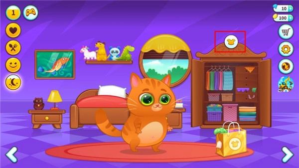 1、bubu生病的时候,会一直弹出肚子疼的标志,点击即可前往诊所。