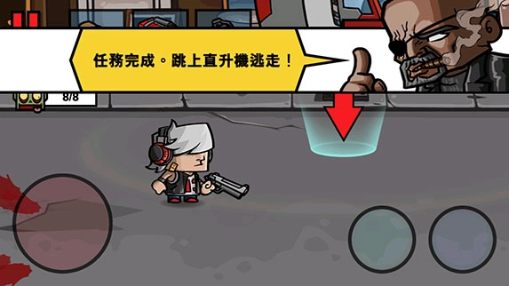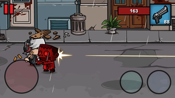 画面里血肉横飞的场景很常见;背景设定在僵尸末日;整个游戏过程就是不停地射击;移动键的操作体验不太好;没有什么特别突出的地方;不过角色数量倒是挺多的;还能让AI和你一起战斗;感觉AI比自己厉害不少。