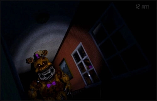 2点左右会出现熊的笑声,要及时去查看前面和后面,在柜子就关门,后面就开灯驱散,之后就按照这样的循环继续做:按照脚步声判断熊来的方向,听到笑声检查前后。