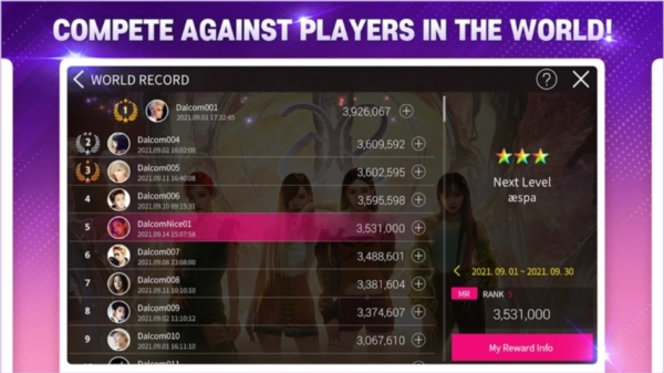 6、全民天团设有两种模式,分别是常规的关卡Weekly模式和每日随机挑战一首歌曲的Superstar模式,这两种模式均设有刷榜奖励。Weekly模式的榜单排名依据是所有歌手中每位歌手分数最高的五首歌曲的得分总和,若达到特定名次,即可提升等级,并获取奖励与金币加成。