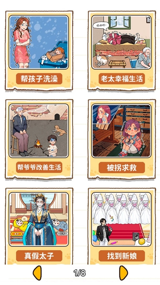 《秃然爆个梗》是一款人气颇高的休闲烧脑小游戏,包含了丰富多样的主题玩法,像帮孩子洗澡、为爷爷改善生活、辨别真假太子等热门内容都在其中。每种玩法下都设有大量不同的关卡,让玩家能够逐一进行探索和挑战,尽情发挥自己的想象力,最终揭开谜题背后的真相。