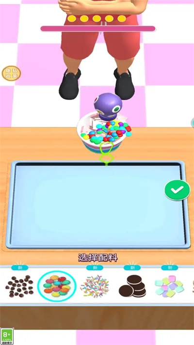 1.通过参与趣味的三消关卡,收集食材和装饰素材,创新制作甜品,提升店铺的人气。