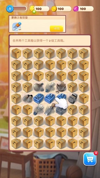 6、之后的玩法就是循环往复,不过要注意的一点,在合成期间并非只有工具箱一种,不同物品之间的合成与拆解可以得到一个全新的装修物品哦~