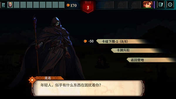 2、玩家可以通过营地商店购买战斗卡牌,商店卡牌可以刷新,金额为0可以无限刷新,玩家可以多刷一次看下卡牌说明然后决定玩什么。