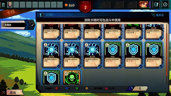 1、内有着丰富的战斗卡牌,分为红、绿、蓝、黄、紫,分别对应攻击,魔法,辅助,道具,消耗。