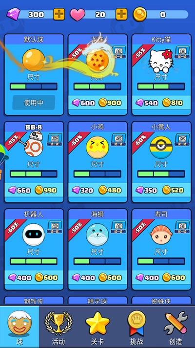 4、拥有钻石,可解锁自己喜欢的小球皮肤,或解锁需要的道具,如图所示