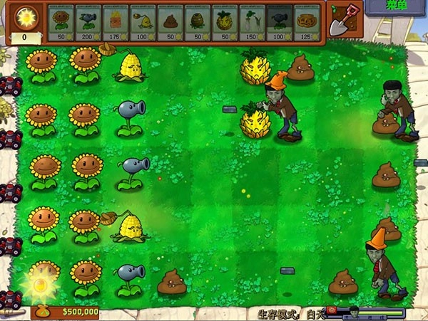 4、不必畏惧损车,闯关时车辆受损是常见现象,掌握合适的损车时机更是一种技巧。一般前期要尽量避免车辆受损,后期若实在难以支撑,就有选择地放弃一排或几排植物,借此积攒足够阳光,车辆被破坏后要马上补全防御阵容。