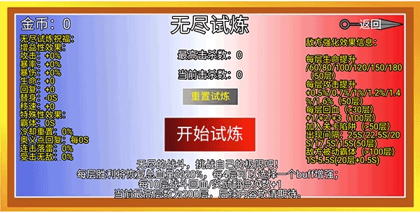3、这里选择的是无尽试炼,我们可以选择一个祝福开始闯关。