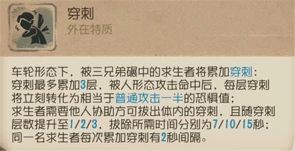 ⑥ 穿刺之轮具备薄墙穿透能力,可打断墙体另一侧求生者的交互动作。