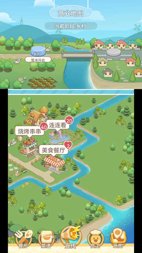 探索多层商业地图,穿插烧烤摊、节奏类、匹配类等轻量小,调剂经营节奏。