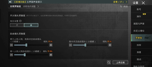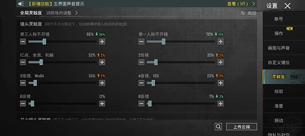 1、全局灵敏度系统推荐中级灵敏度。