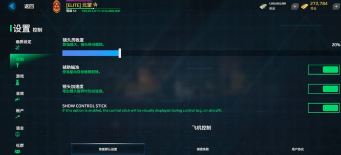 3.新增设置选项,显示飞行控制遥杆