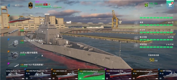 此外,MODERN WARSHIPS玩法简单,在这里玩家只需要左侧控制方向,右侧控制导弹、望远镜等,射击方式采用自动锁定,操作难度基本没有,但可玩性却丝毫不差。同时中每艘舰船都有自己独特的升级系统,可以提升外观、生命值、引擎速度和转向速度,还可以使用鱼雷、拦截机等各式现代化武器进行强化,完全可以按照自己的喜好来定制武器。