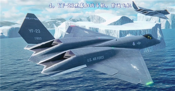 四、YF-23黑寡妇战斗机,紫通飞机,它的速度快射程远,并且机炮威力更大,伤害更高;相较于YF-22,YF-23的机身比较长,采中单翼,机翼的前后缘分别后掠与前掠40度,类似于菱形。机身后方没有水平控制面,以两片向外倾斜50度的垂直控制面取代两者。