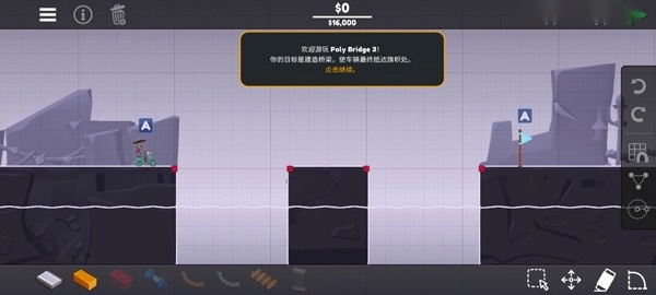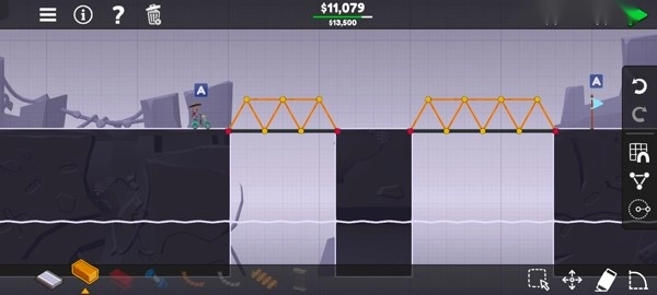 3、完成新手教程后就可以正式开始了,玩家需要使用左下方的材料搭建桥梁;