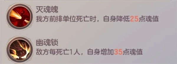 【灭魂魄】:当Boss阵容的武将死亡时会使Boss降低魂值。