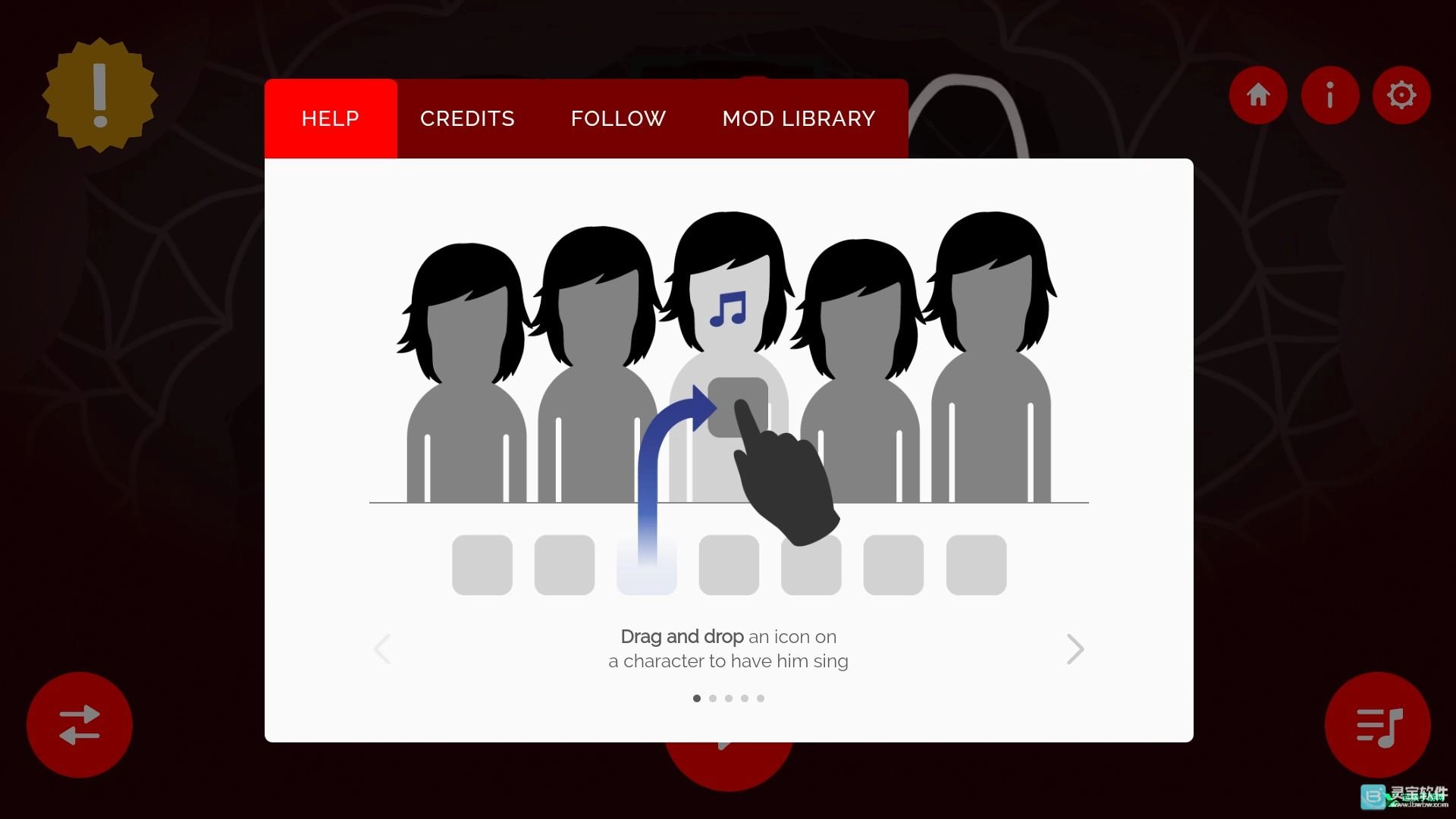 4、设置左侧的感叹号打开是操作指南,玩法非常简单,拖动放置即可;
