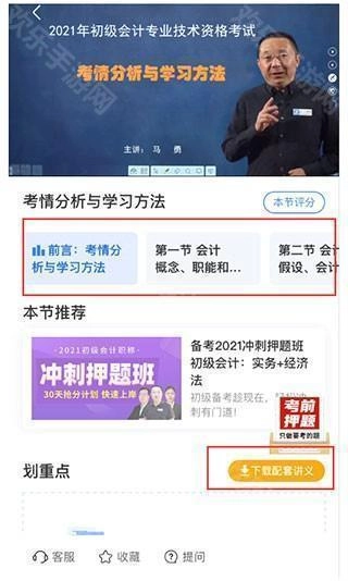 3、课程播放页面可随时设置播放速度、切换章节、配套讲义、收藏课程等,享受多样化的教学服务。